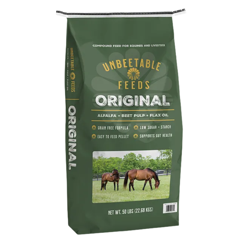Unbeetable Original (anciennement connu sous le nom Unbeetable Forage Only) est un remplacement de fourrage sans grains, conçu pour les chevaux et autres animaux d’élevage.